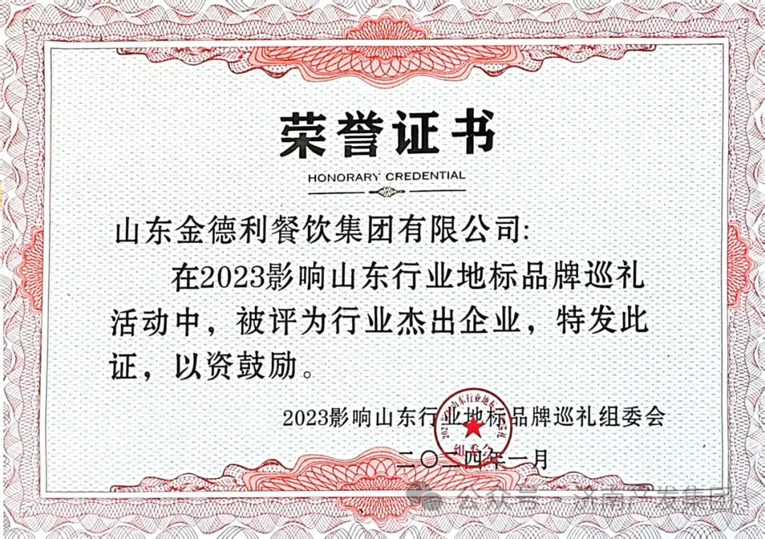 赋能企业创新转型、擦亮品牌文化底色、凝聚山东品牌力量、助推山东经济高质量发展,近期,“2023影响山东行业地标品牌巡礼”大会在济南舜耕山庄成功举办,山东金德利集团荣获“行业杰出企业”称号。