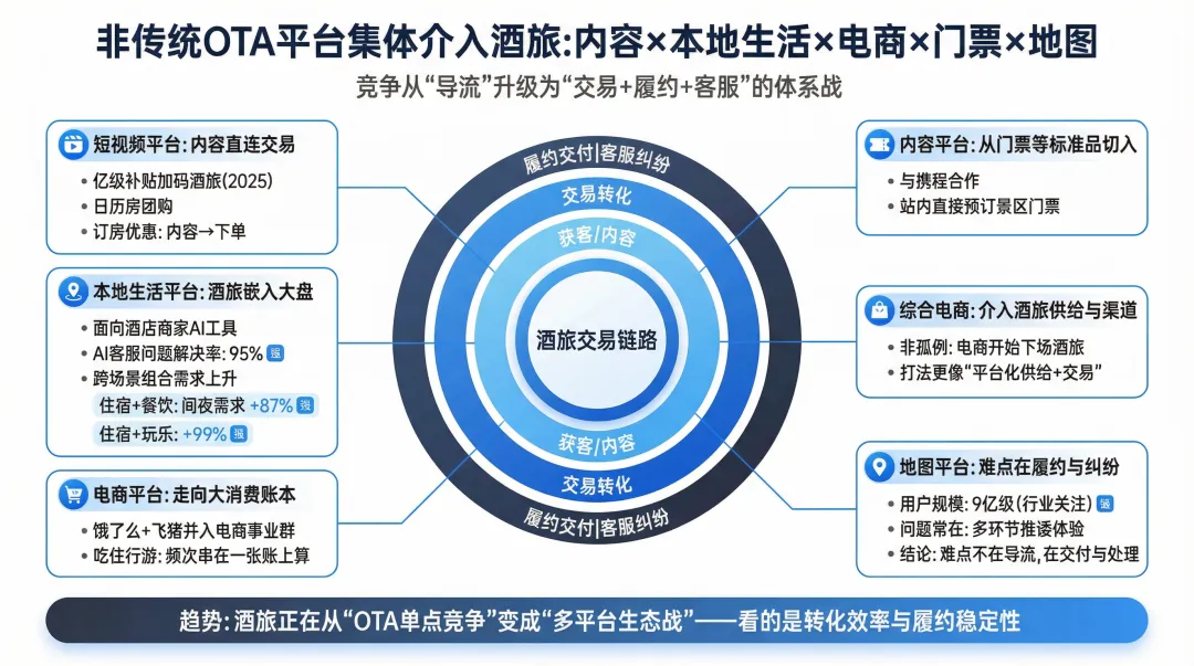 携程立案这天,京东把文旅公司落地了,酒旅平台从拼价格拼流量,开始转向拼规则和售后。 这一天下午,业内人士的手机几乎同时弹出两条消息。市场监管总局依据反垄断法,对携程集团有限公司涉嫌滥用市场支配地位立案调查。几乎同一时间,天眼查工商信息显示,北京京东文旅发展有限公司成立,注册资本10万元,经营范围覆盖旅游业务、旅客票务代理、航空商务服务、歌舞娱乐活动等,由京东体系公司全资持股。 小编更愿意把它理解成一次窗口期的加速。监管把平台规则推到强光下,行业的心理预期会变成一句话,规则不能只靠平台自己说了算。而京东把文旅做成单独公司,像是在把酒店预订、门票演出、目的地活动这些更复杂的业务装进一个能签约能落地能推进合规的主体里,准备把生意链路做长做深。 为什么是现在,其实也不玄乎。中国的文旅盘子着实大,文化和旅游部披露2024年国内出游56.15亿人次,国内游客出游总花费5.75万亿元。然而盘子越大,用户的不满和商家的痛点就越值钱,因为哪怕只把一个环节做顺一点点,放大到全国就是很大的订单量。小编采访了一位酒店收益经理,对此事,他的反应很直接,他不怕多一个渠道,怕的是规则不清楚,今天一个活动明天一个比价,退改扯皮最后都是前台和客人吵架。他更在意谁能把规则说清楚,把售后接住,把对账结算做顺。类似情绪也能解释京东为什么先用低抽成抢供给。2025年6月京东提出酒店商家参与计划可享最高三年0佣金,并披露两天内收到近5万家酒店商家入驻申请。成立文旅公司则是为了把签约、票务、活动、目的地合作这些更重的事交给专门团队去跑,让推进速度更快,边界更清楚。 其实,京东并不是孤例,非传统OTA平台正在集体介入酒旅。抖音在2025年投入亿级补贴加码酒旅,推动日历房团购和各类订房优惠,把内容和交易直接连在一起。 美团走的是另一条路,它把酒旅嵌进本地生活的更大盘,同时发布面向酒店商家的AI工具,并披露AI客服问题解决率提升至95%,还披露住宿跨场景组合需求增长数据,住宿加餐饮间夜需求增长近87%,住宿加玩乐增长99%。阿里则把饿了么和飞猪并入中国电商事业群,公开表述从电商平台走向大消费平台,意思是把吃住行游的消费频次串在一张账上算。快手更像从门票这种标准化品类切入,它与携程达成合作,让用户在快手内直接预订景区门票。 高德也被行业持续观察,它有9亿级用户规模,但业内讨论更多集中在履约和客服链路的复杂性,有媒体报道过在高德订酒店或票务出现多环节推诿的体验,这反过来说明地图类平台要做酒旅,难点不在导流,而在订单交付和纠纷处理。 那京东成立文旅公司和携程被立案到底有什么关系,小编的判断更偏向同向而不是因果。监管立案会让头部平台在规则和条款上更谨慎,酒店和景区也会更愿意听新的合作条件。京东用低抽成和公司化承接复杂业务,给供给侧一个可谈判的新选项。最让携程以及传统OTA体系紧张的,可能不是某一单被抢走,而是酒店资源端和用户端开始把平台当作可替换渠道,一旦用户习惯被改写,获客成本和补贴强度就可能被迫上升。哪些公司会被迫调整策略,我们更愿意把它说成谁更难继续用老办法赚钱。携程要守住供给就得让酒店觉得合作更划算,要守住用户就得让退改更省心、客服更能兜底。压力同样会传导到同程飞猪美团这些原本就在酒旅里的平台,也会传导到抖音快手高德这类正在介入的流量平台,大家最终都会被逼着在两条路里做选择,是继续用补贴换短期订单,还是把钱花在规则更清楚、客服更快、纠纷更少上。真正值得业内人士盯的也更简单,谁能把投诉和纠纷压下去,谁更可能在补贴退潮后留下回头客。 『小麦同学|旅游地产观察』 『TRUE趣游2026文旅铁粉群』