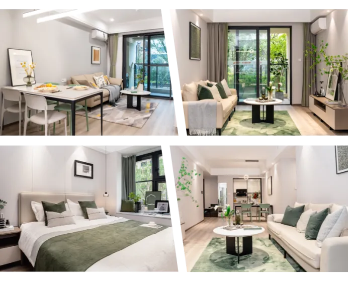 淞北四季公寓以深度客研为基础,精准锚定25-39岁青年人才的多元需求。户型跨度从独居精致一室到家庭三室,满足不同人生阶段的居住需求。客厅采用无主灯设计,搭配餐厅艺术吊灯,构建丰富的光影层次与场景氛围;全屋贯穿系统化收纳思维,从入户玄关、厨房橱柜、卫生间镜柜到卧室洞洞板墙面,最大化提升空间效率;独立洗衣机配置保障合租户型的卫生自主权,阳台侧面的微型条窗,增加室内采光的同时促进空气流通,于细微处彰显设计巧思与人文关怀。