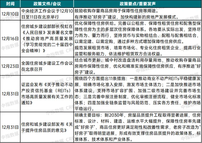 12月,中央政策导向主要聚焦“优化保障性住房供给”、“强化金融支持”与“提升住房品质”三大维度。