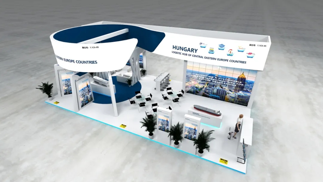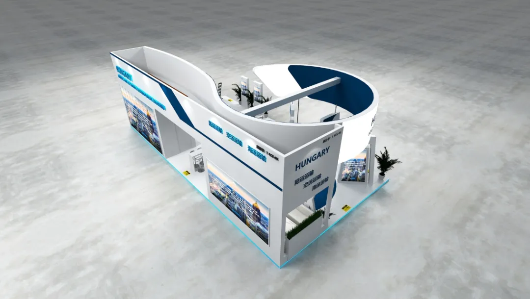 CECZ中欧商贸物流合作园区展台,以“中欧跨区域协作纽带的国家级合作形象具象化”为核心落点:采用蓝白主调搭配中欧双元标识元素,精准锚定跨国家合作平台的视觉辨识度;弧形开放动线既呼应物流合作“互通互联”的核心属性,又营造出开放共融的国家间协作氛围;展陈中融入中欧商贸物流枢纽资源、合作成果等内容分区,让观展者在场景化体验中感知园区作为中欧国家间商贸物流协作载体的功能价值——既以符号化设计强化了“中欧合作”的国家级项目属性,又以功能化展陈传递了跨区域商贸物流平台的实际价值,是国家间合作类展台“形象标识性 + 价值传递性”双向落地的优质实践。