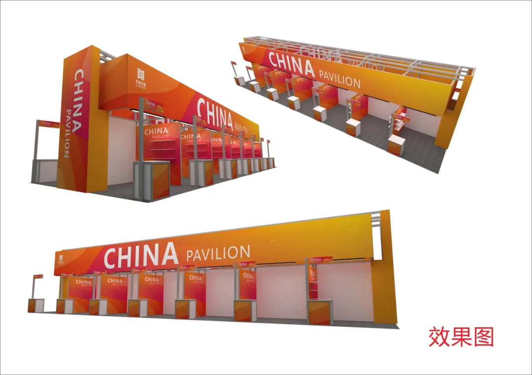 本展区采用开放式线性布局,取消冗余装饰造型与复杂层级结构,将接待、展示、洽谈等功能集成于标准化单元模块中,避免单一功能道具的重复制作,既强化整体品牌辨识度,又减少非功能性材料的投入。以统一的橙红渐变视觉体系替代分散的装饰元素,选用轻量化喷绘工艺替代传统重型灯箱,结合局部精准照明替代全域灯光覆盖,在保障展示效果的前提下,大幅降低装饰物料与能源的消耗。所有功能单元均按照通用展会空间尺度设计,可适配不同展会的展位规格,无需为单一项目单独定制造型,从设计层面保障了展具与空间的跨项目复用性。