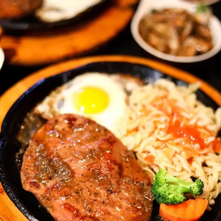 ·菲力牛排(2份)、招牌披萨(1份)、风味奶茶(2杯)