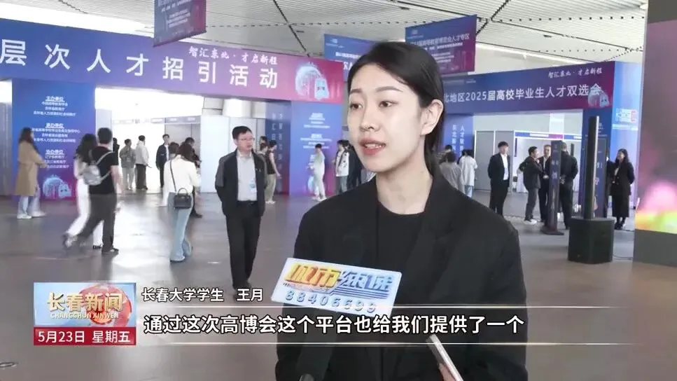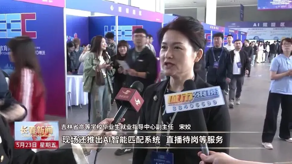 吉林省高等学校毕业生就业指导中心副主任 宋姣:高博会人才专区创新搭建了产业人才精准对接平台,特别设置了装备制造、光电信息等7大产业振兴板块。现场还推出AI智能匹配系统,直播待岗等服务,形成了立体化的招聘生态,助力东北留才、引才。