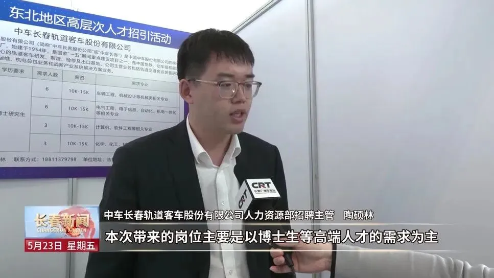 中车长春轨道客车股份有限公司人力资源部招聘主管 陶硕林:本次带来的岗位主要是以博士生等高端人才的需求为主,除此之外我们本科生、硕士生也都在不断的招聘过程中。