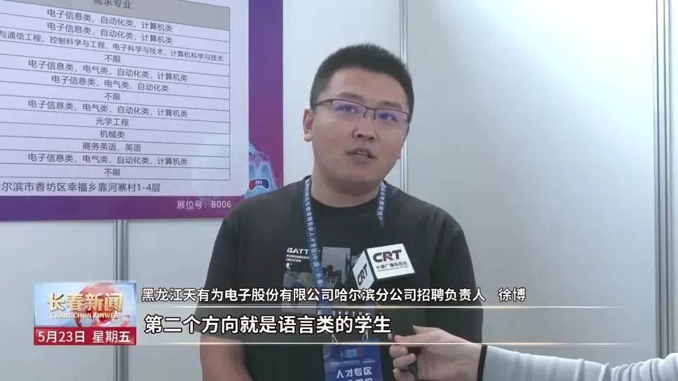 黑龙江天有为电子股份有限公司哈尔滨分公司招聘负责人 徐博:以技术类的岗位为主,像软件、硬件、嵌入式这是一个大的方向,第二个方向就是语言类的学生,因为我们有很多项目都是在国外。现在公司项目比较多,也是急需人才。