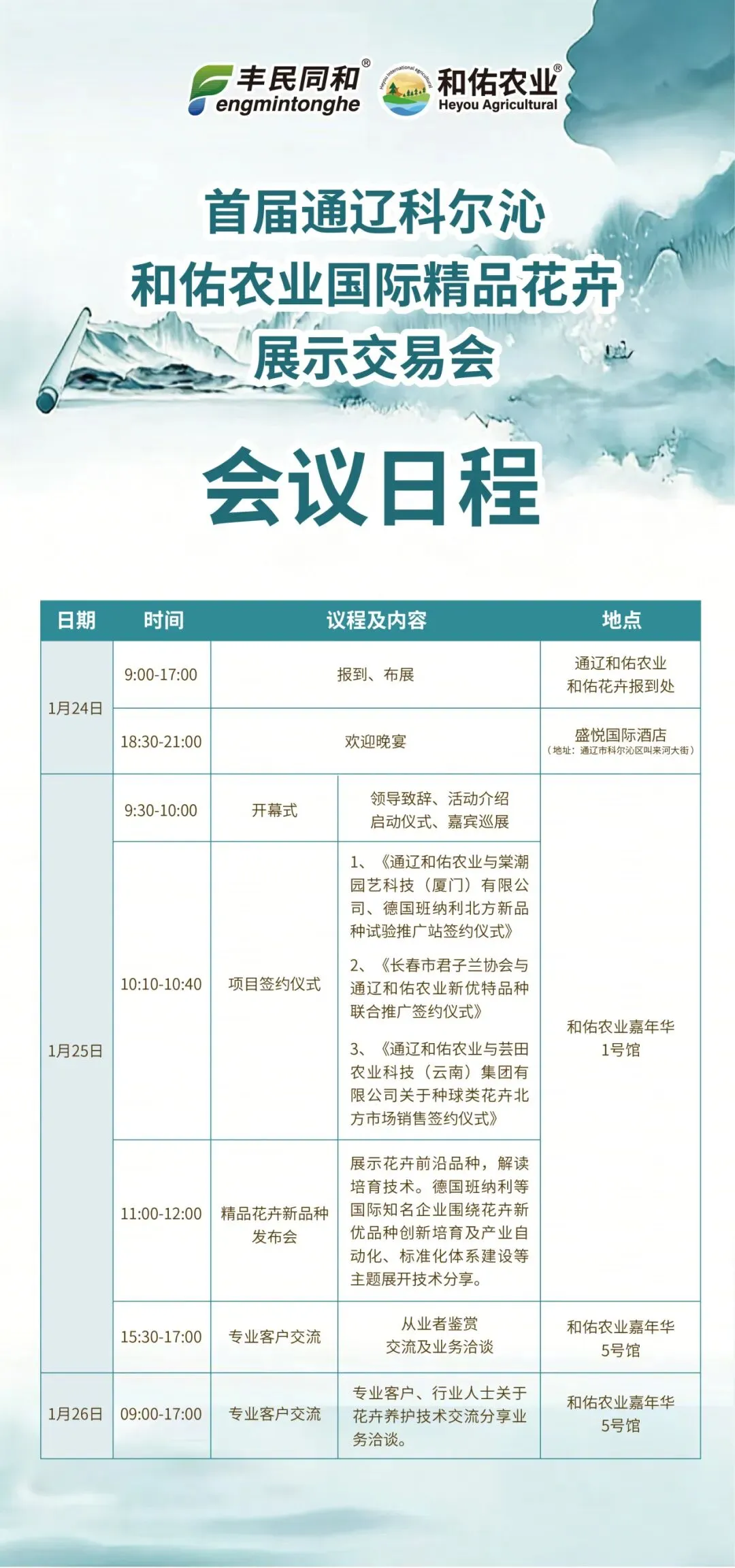 万树繁花绽芳华,“首届通辽科尔沁和佑农业国际精品花卉展示交易会”将于2026年1月24日-26日在通辽和佑农业有限公司(中国·科尔沁国际农业高新技术产业园)盛大开幕。本届展会汇聚了国内外花卉名品与园艺精品,无论是参展商规模还是预计参与人数,均有望创下历史新高。