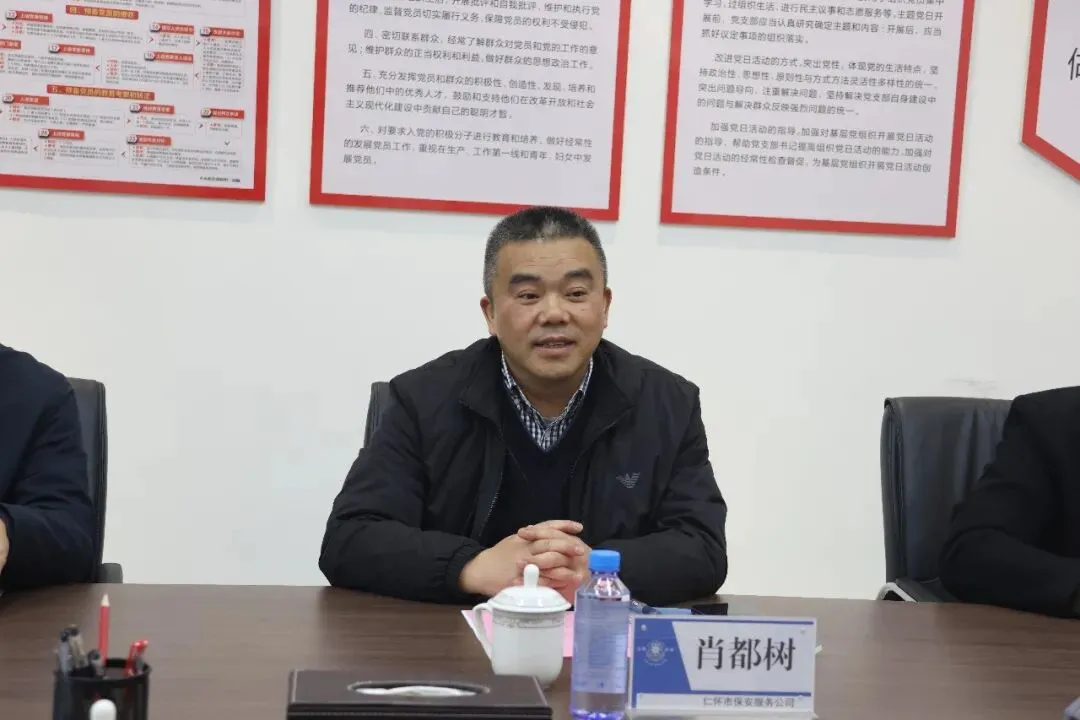交流座谈会上,公司董事长肖都树对考察团的到来表示热烈欢迎,详细介绍了公司在人力保安、智慧安防、人力资源服务、退役军人就业保障等领域的实践经验与发展规划。他表示,此次考察交流为公司搭建了宝贵的学习平台,期待各位同行“把脉问诊”,多提转型发展建议,未来可在更广领域、更深层次探索合作空间,携手推动行业高质量发展。