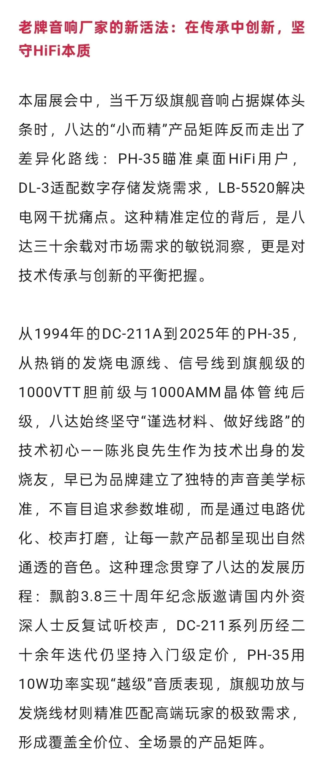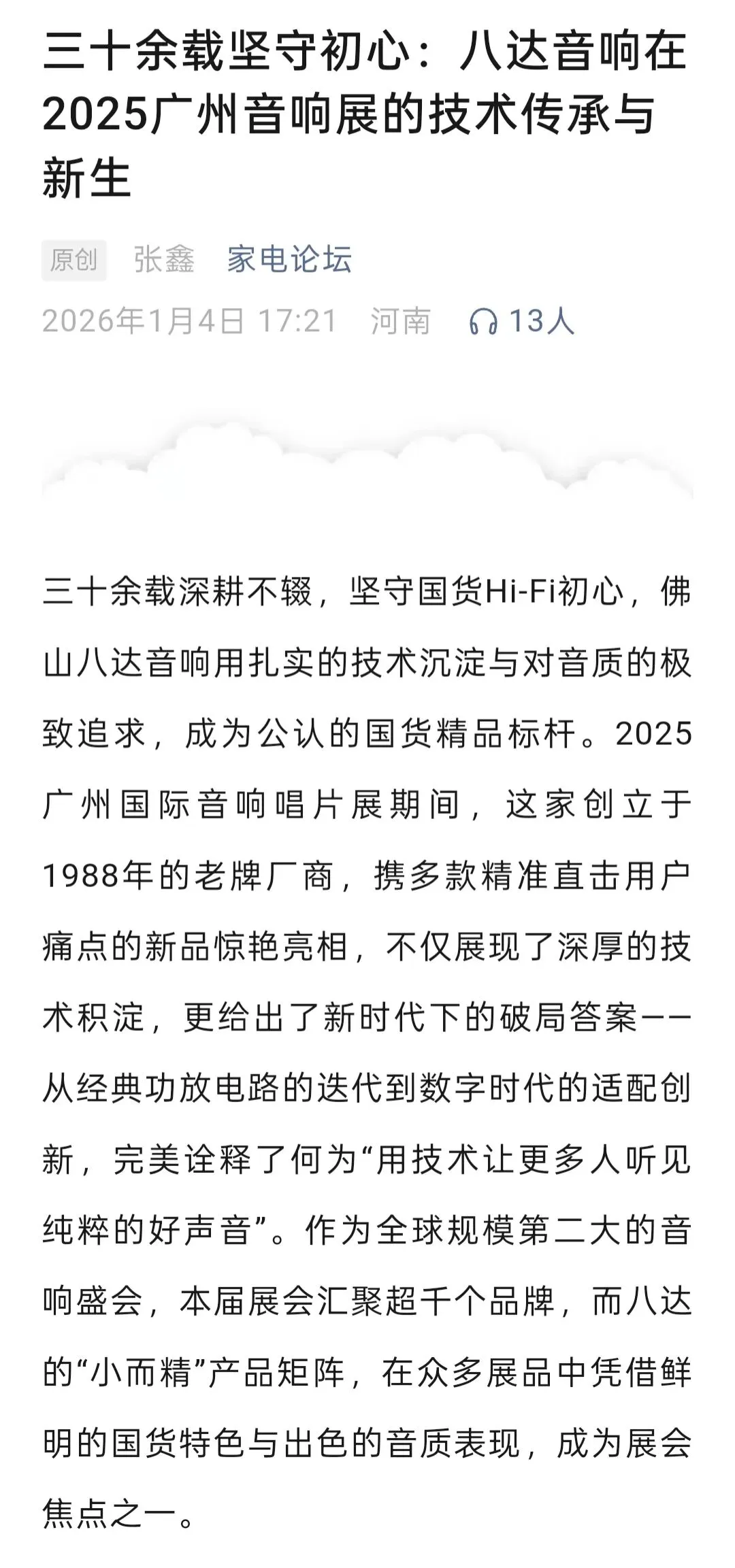 转发家电论坛展会点评:《三十余载坚守初心:八达音响在2025广州音响展的技术传承与新生》