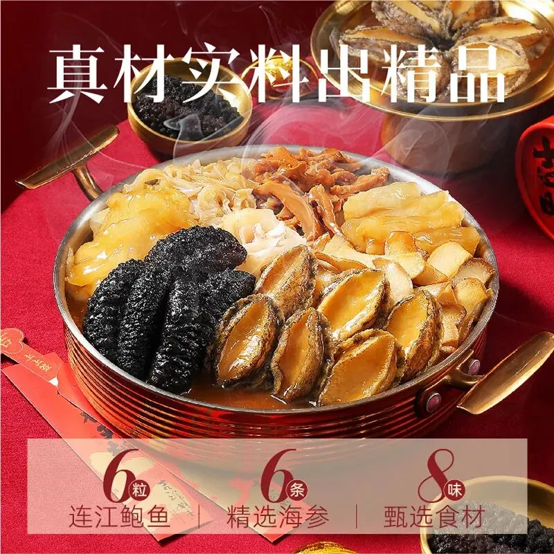 六六大顺大盆菜汇集进口野生捕捞海参与甄选连江鲍鱼,佐以10小时慢熬的醇厚鲍汁,食材高端,汤汁浓郁,尽显大盆菜的丰盛与品质,更是年礼精品。