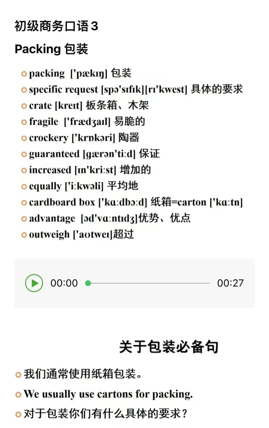 中高级课程面向有一定英语基础的学员,进一步提升学员在陶瓷外贸领域的专业英语能力。课程将深入讲解陶瓷行业的专业术语、实用商务口语、国际贸易全流程、单证实务以及函电写作技巧。
