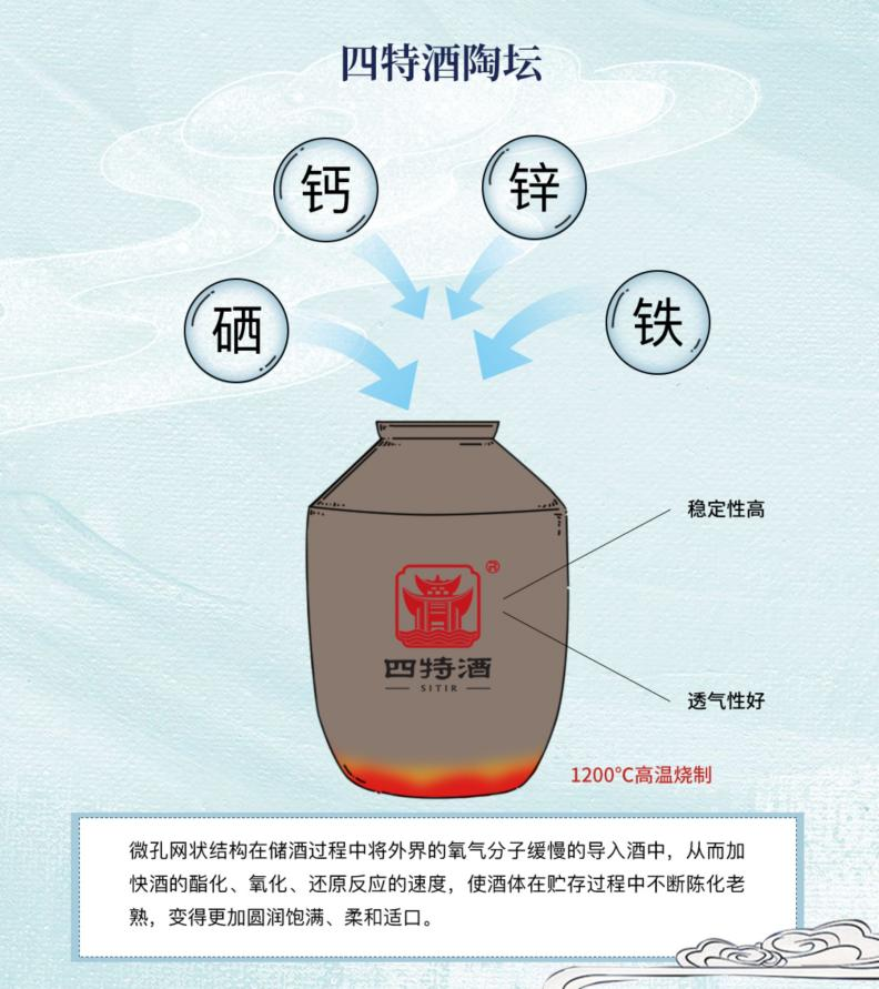 三分酿造,七分储藏。四特酒陶坛酒库所用陶坛由富含硒、铁、锌、钙等元素的天然安全优质的粘土制成,经1200℃的高温烧制,形成了微孔网状结构,稳定性高,透气性好。除此之外,四特酒还有大量的储酒容器、地下酒池和不锈钢罐群,储量突破11万千升。