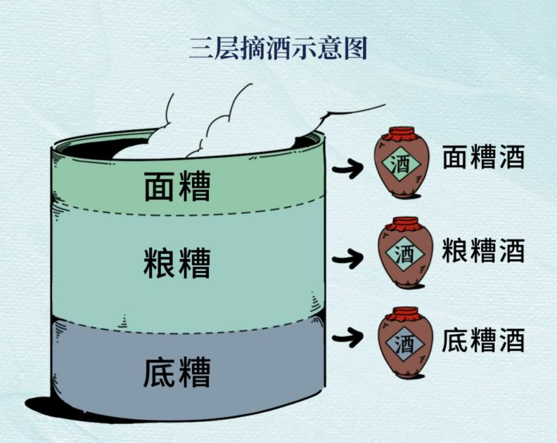 四特酒的摘酒可是有讲究的。将发酵窖池里的酒醅按上、中、下三层取酒,然后再将每个层次的酒分别入库贮存。上层的面糟酒乙酸乙酯含量高,偏清雅,作为调味酒使用;处于中间层的粮糟酒粮香舒适,口感协调,突出粮香的同时,具备传统特香基酒风味,因此作为特香型基础酒使用;而底糟酒窖香浓郁,风味醇厚,则作为调味酒使用。