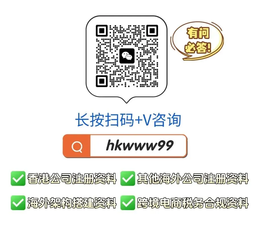 如果您有跨境电商税务合规需求,可扫码添加我司在线客服(微信号:hkwww99),安排专业经理解答疑惑,提供专业意见及全程一对一服务↓↓↓