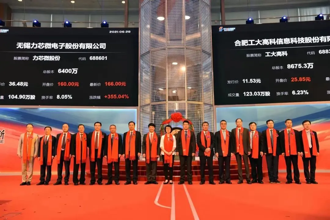 无锡市人民政府副市长高亚光,无锡高新区党工委副书记、管委会主任、新吴区委副书记、区长崔荣国与企业负责人共同敲响了开市宝锣。市地方金融监管局局长顾伟,区领导朱晓红,区党政办、发改委、工信局、人社局、税务局、科创中心、太科园管理办、高新创投、基地公司等部门负责人及力芯微高管、股东、券商代表出席上市仪式。