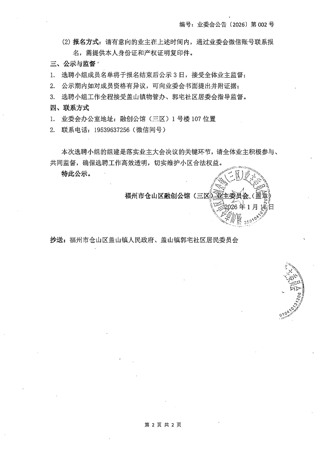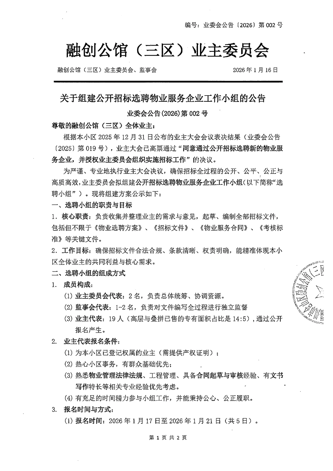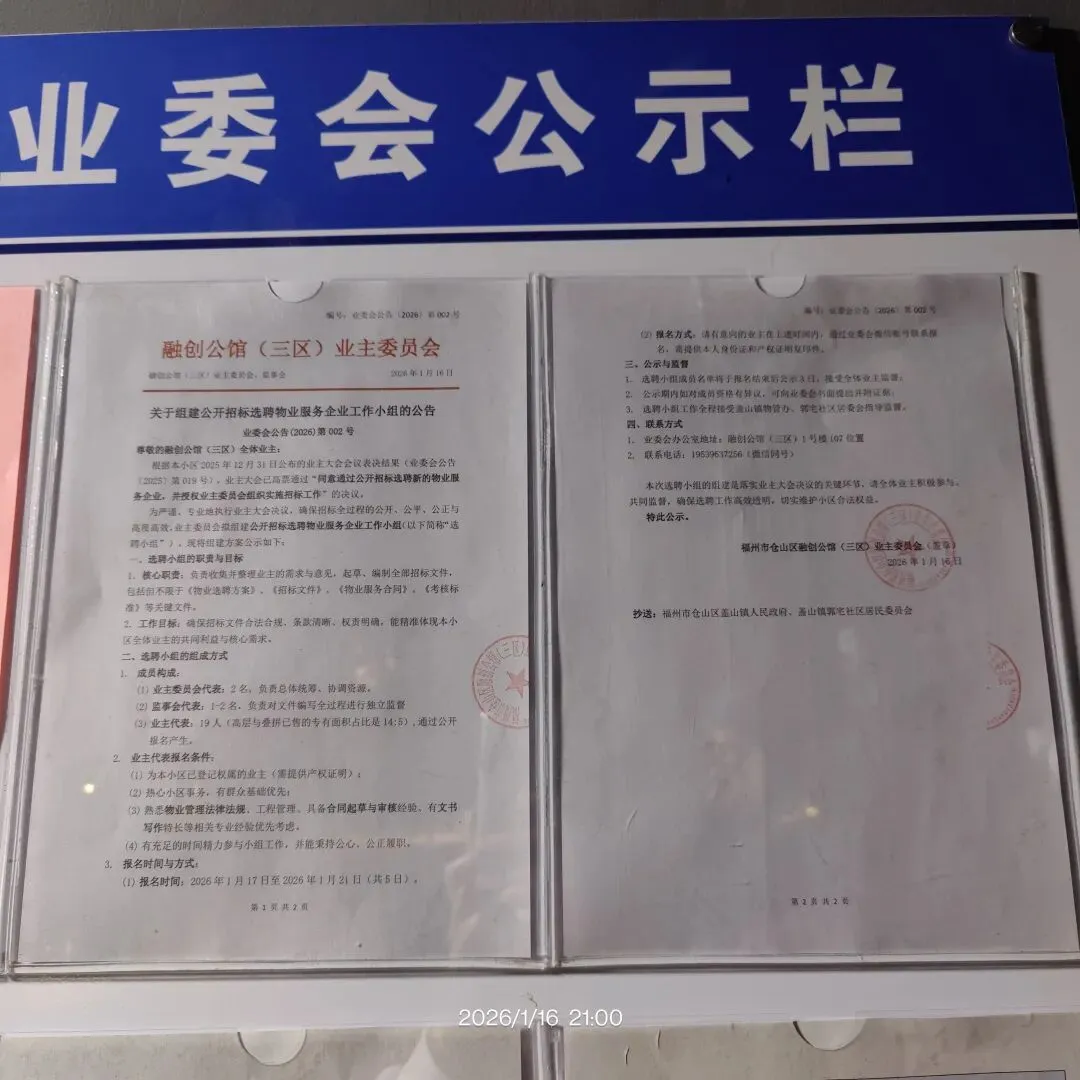 业委会公告(2026)第002号