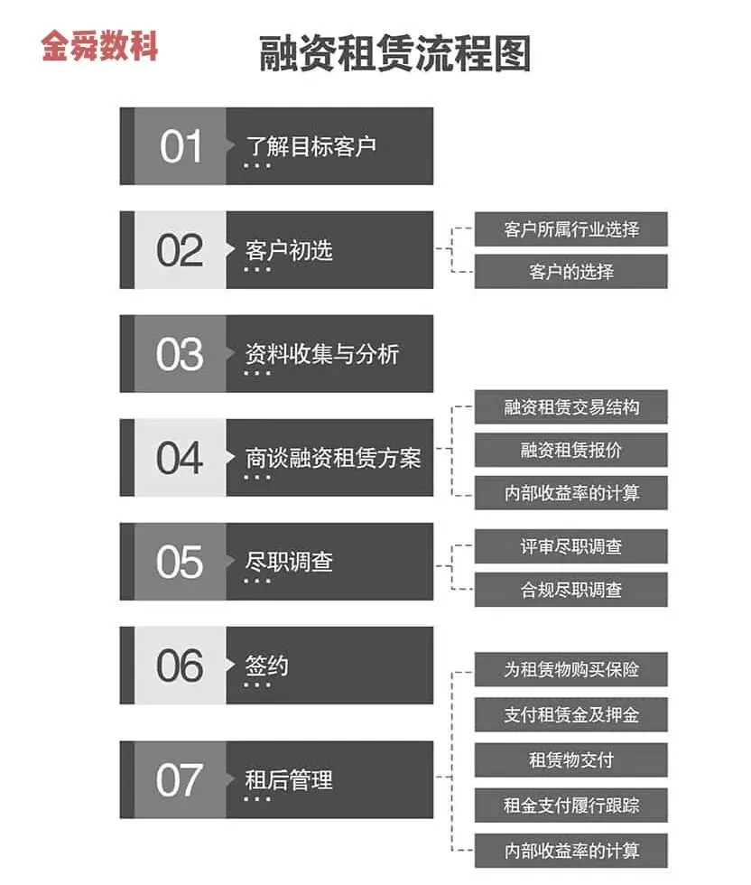第四阶段是租后管理。租赁公司会持续跟踪租赁物使用情况和企业经营状况。对于经营租赁,还涉及资产维护和保险安排。