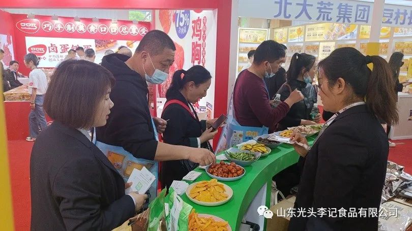 此次糖酒会,光头李记展厅现场展示了多款主营系列产品,更有我们的新款手抓包系列果蔬脆亮相,让合作伙伴可以根据自己的需求随意选择,诚意满满