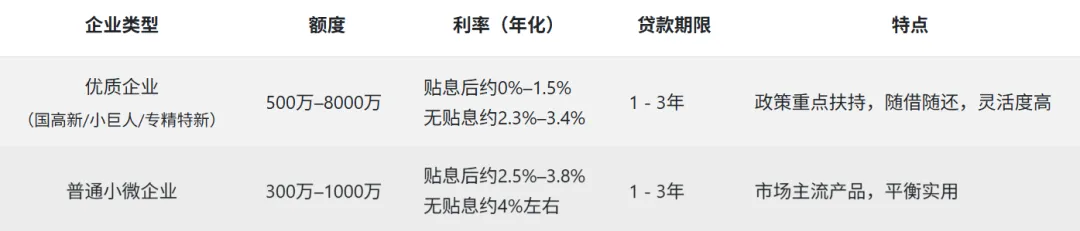 - 普通企业产品:市场主流产品,在额度、利率和还款方式上取得平衡,能满足大多数小微企业的融资需求。