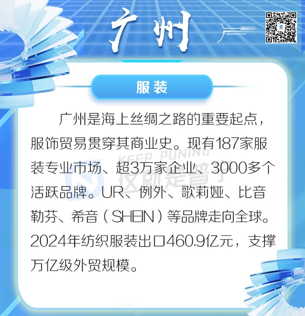 无论是纺织服装领域的虎门女装、大浪品牌女装、大朗毛织、增城牛仔、沙溪休闲服、潮州婚纱礼服、普宁内衣等七大集群各展所长,广东都展现出强大的产业深度与广度。