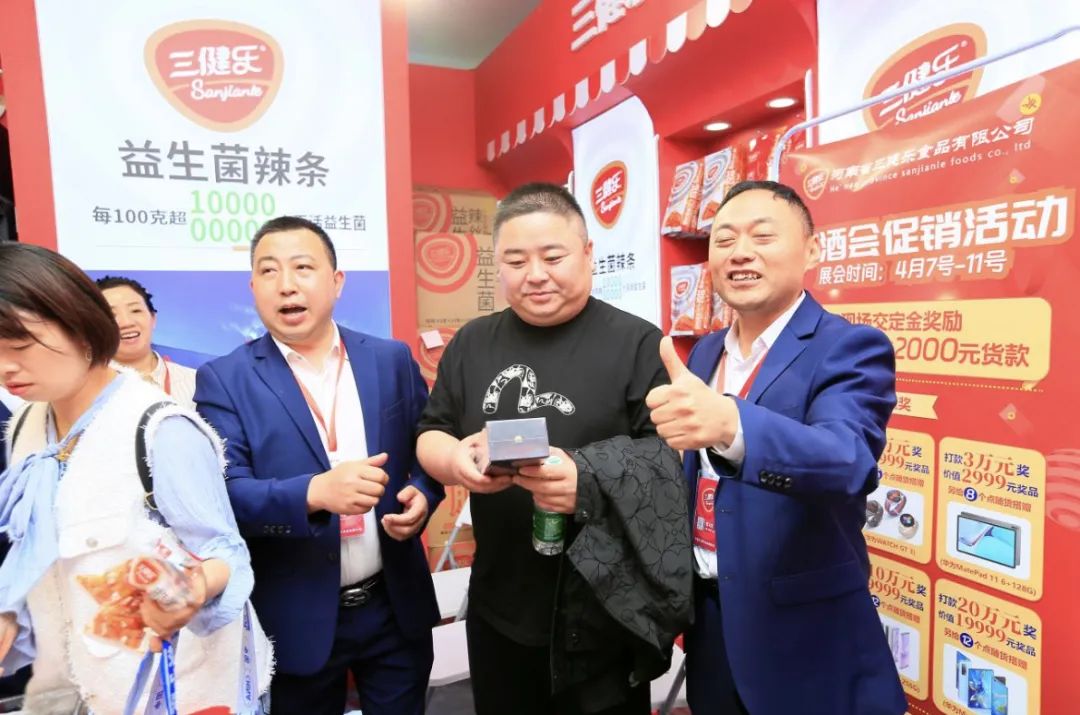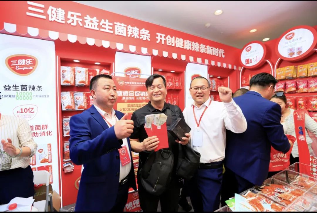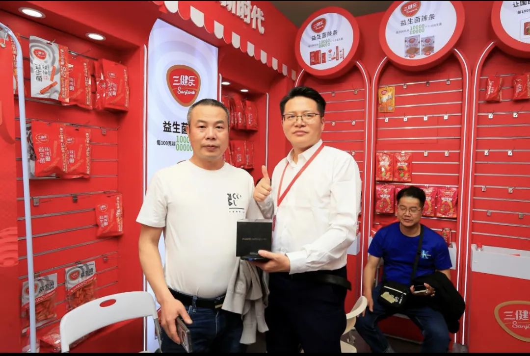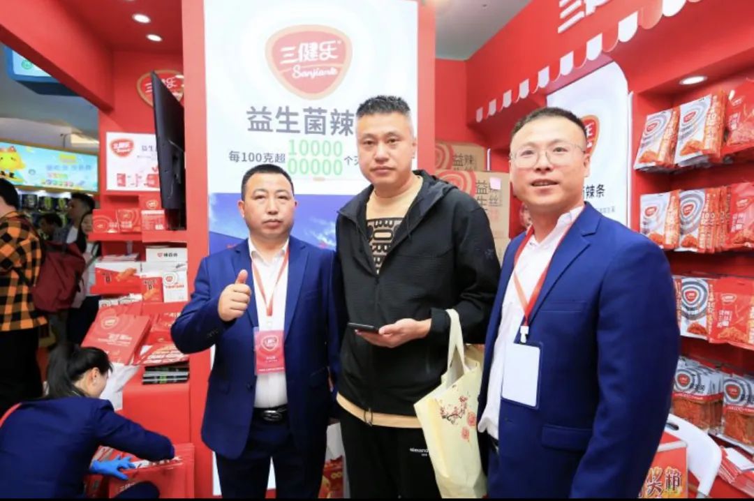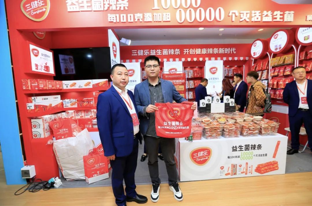成都第108届糖酒会第二天,三健乐益生菌辣条展会现场交易火爆!