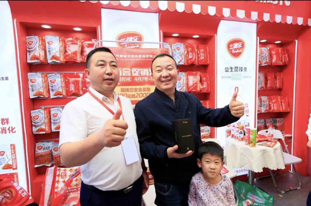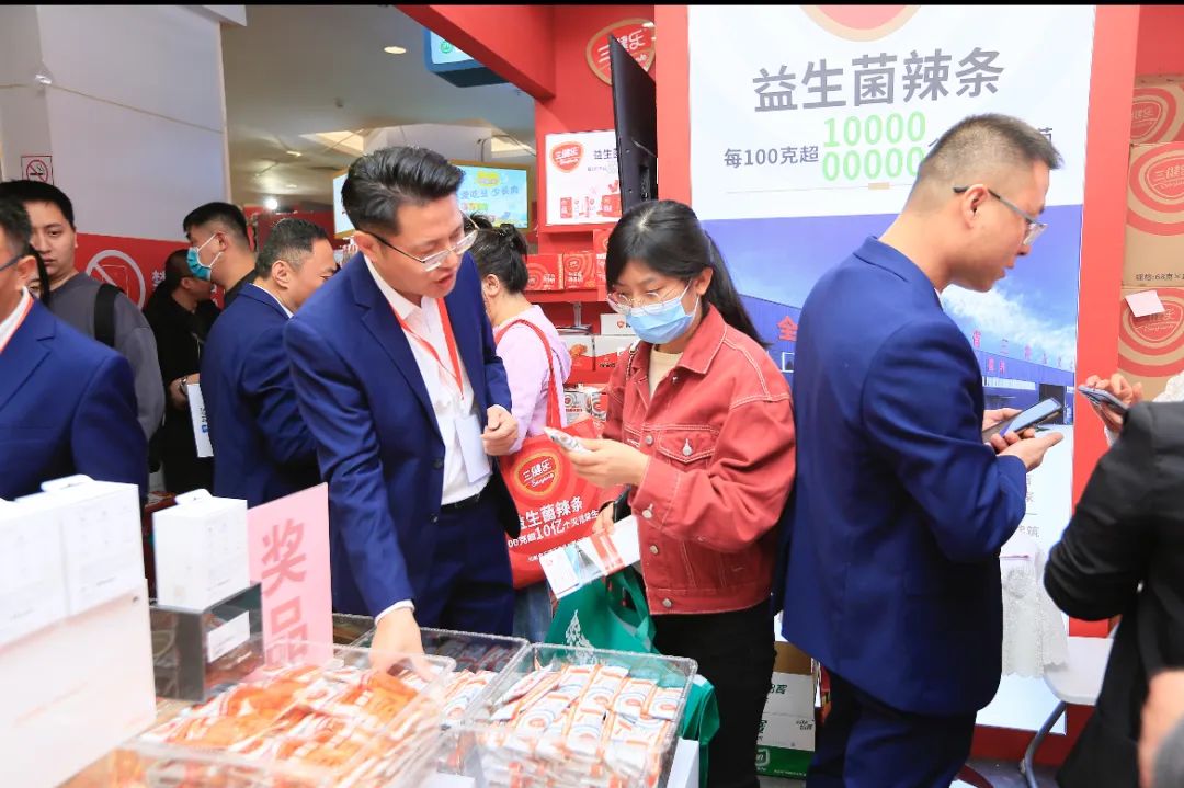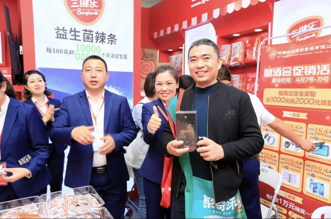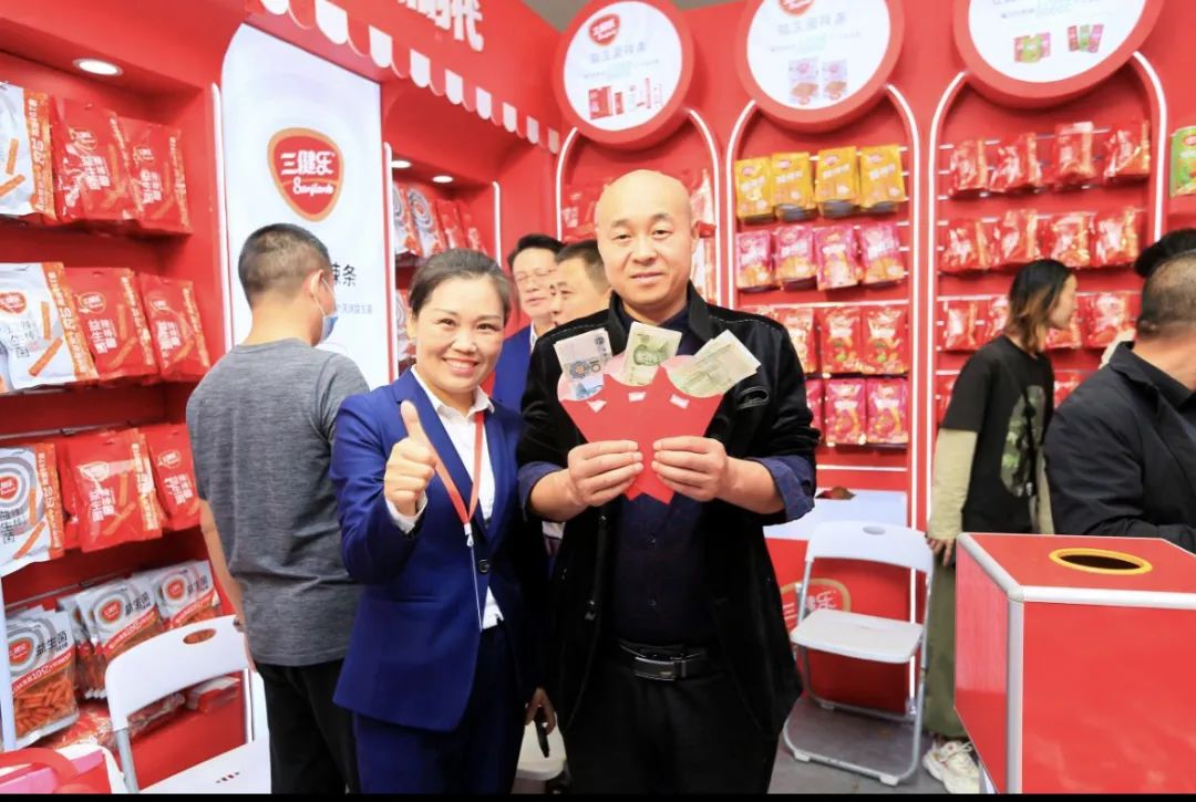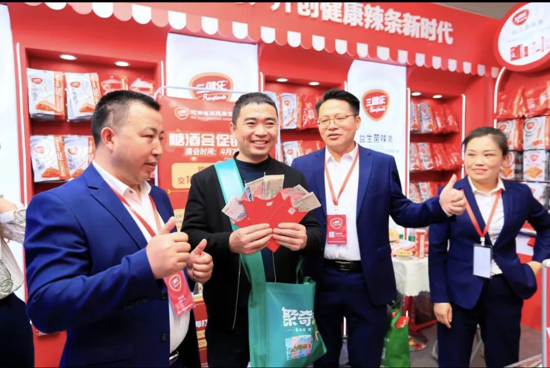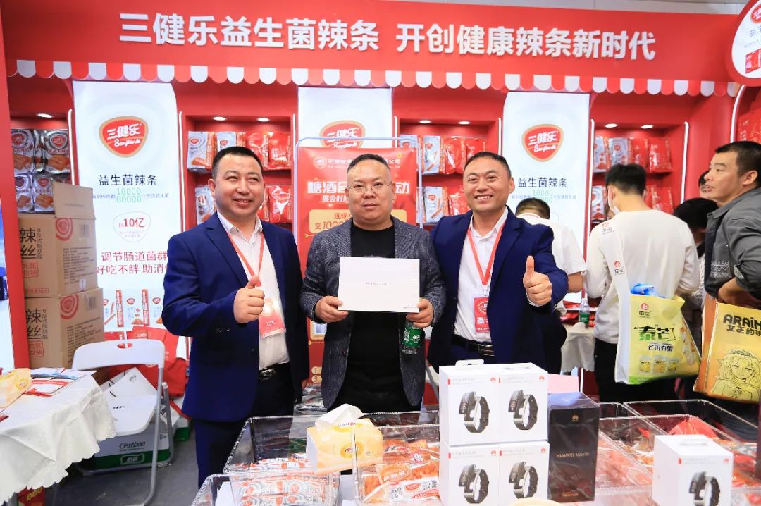 成都第108届糖酒会第二天,三健乐益生菌辣条展会现场交易火爆!