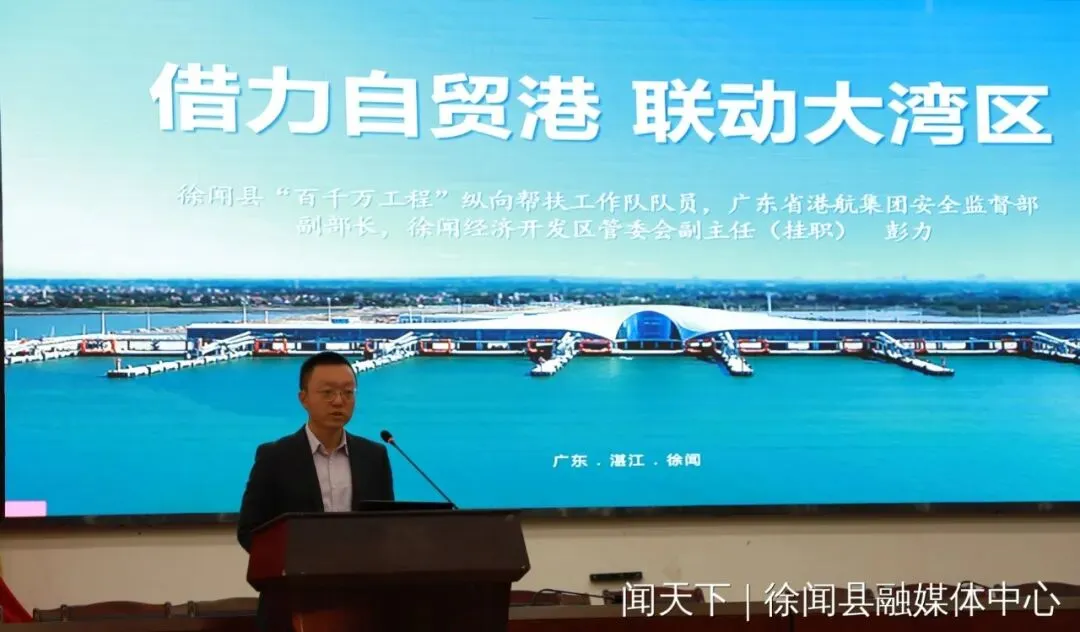 在招商推介环节,徐闻县投资促进中心副主任杨昌明详解了当地招商引资政策、土地资源、营商环境等核心优势;徐闻经济开发区副主任彭力围绕“借力自贸港 联动大湾区”主题,阐述了徐闻在制度创新、通道建设、产业协同等方面的独特机遇,向企业家发出诚挚邀约。