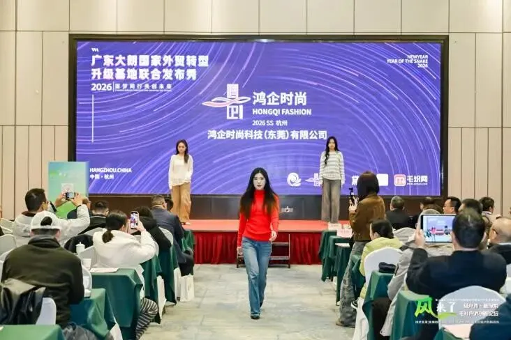 1月9日,“广东大朗国家外贸转型升级基地宣传推介会”在杭州临平举办。黛妃、昕升、优美、喜纺、鸿企、杉励萌6家大朗代表性毛织企业携手亮相,通过动态走秀、静态展示与品牌采购对接等形式,向华东地区时尚界、采购商展示大朗毛织的产业实力与创新成果。