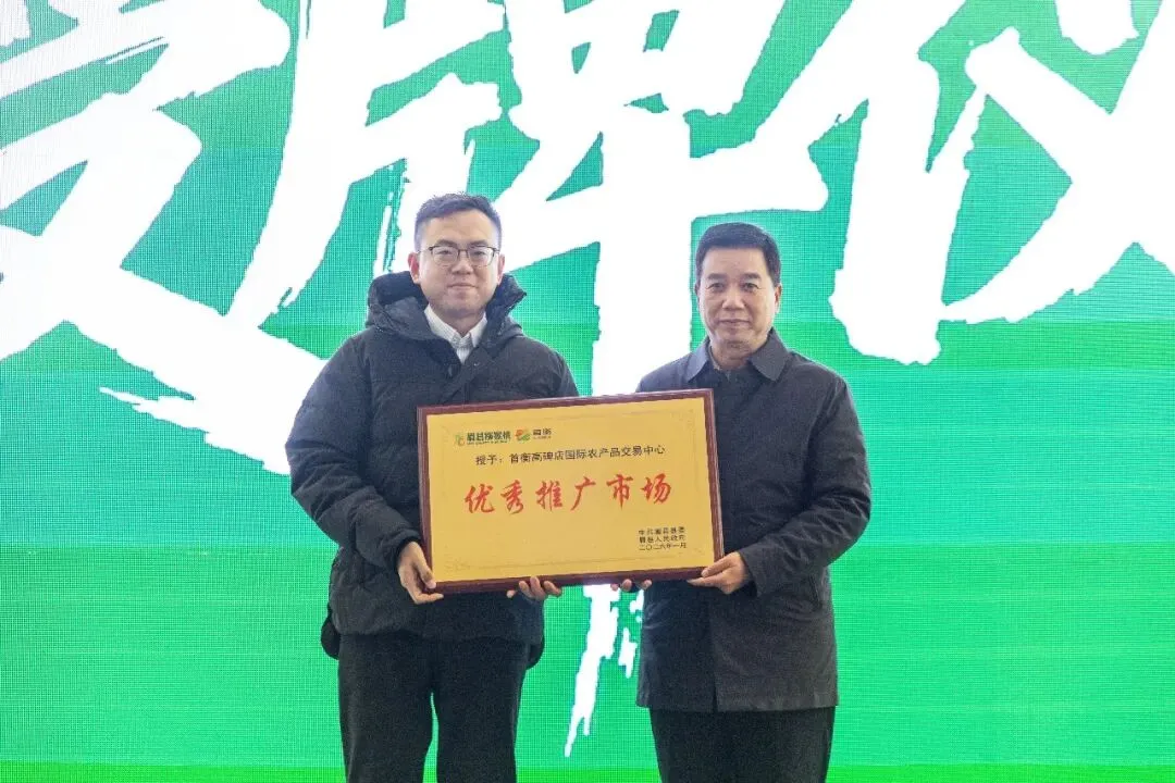 在授牌环节上,眉县县委常委、副县长王富强向首衡高碑店市场授予了“优秀推广市场”称号。