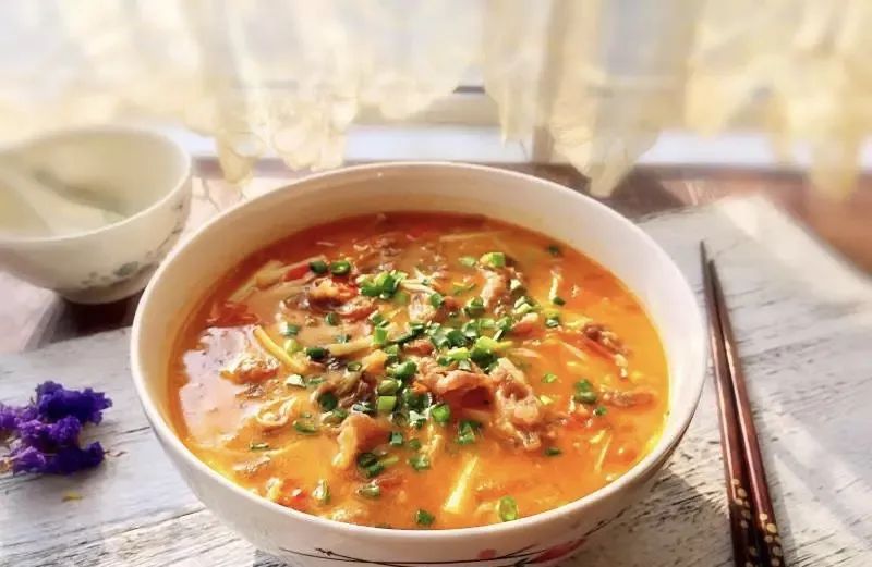 午餐:酸汤肥牛、肉末豆腐、香菇青菜
