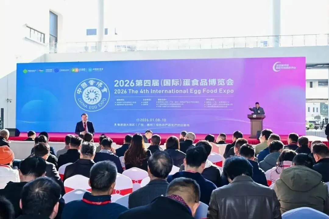 1月9日,2026第四届(国际)蛋食品博览会开幕式在粤港澳大湾区(广东·惠州)绿色农产品生产供应基地举行。博罗县领导杨旭先、潘燕梅、刘健锋出席活动。