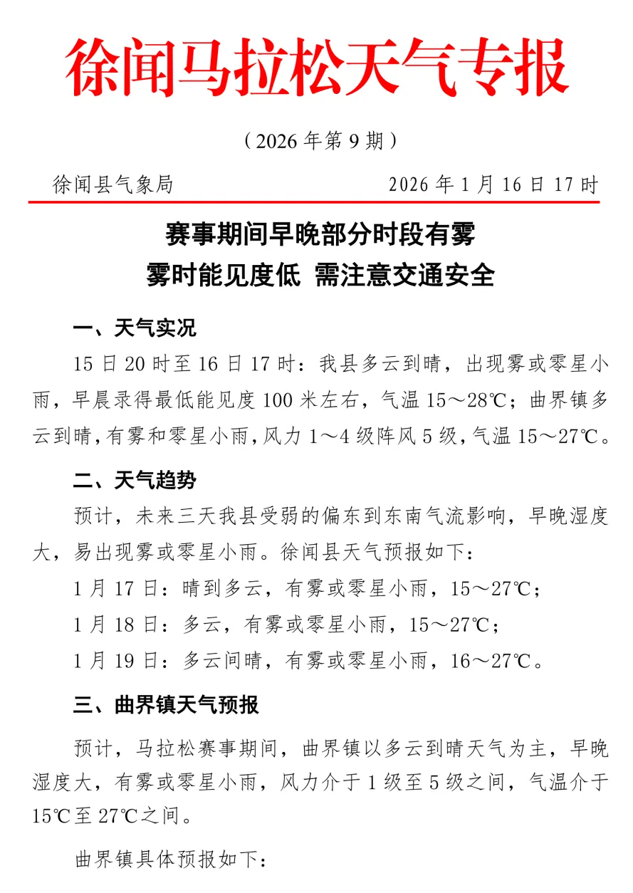 将于1月17日(明天)8:00开跑