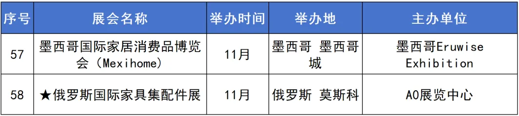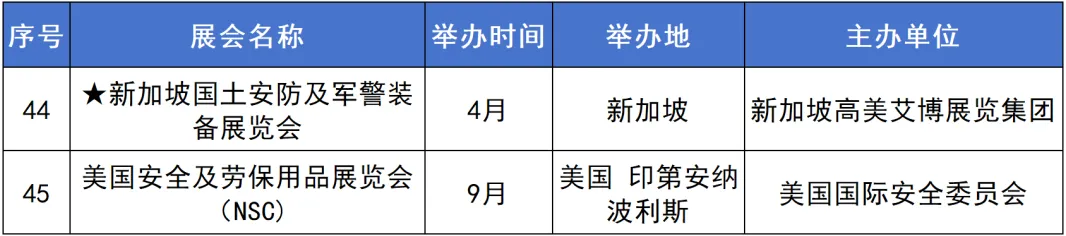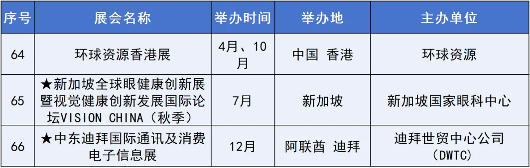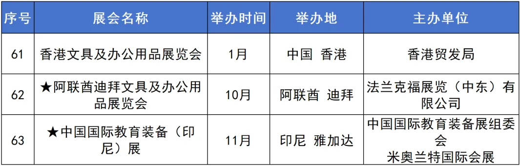 注:“★”展会为“一带一路”沿线展会或RCEP区域展会。