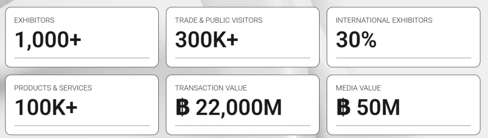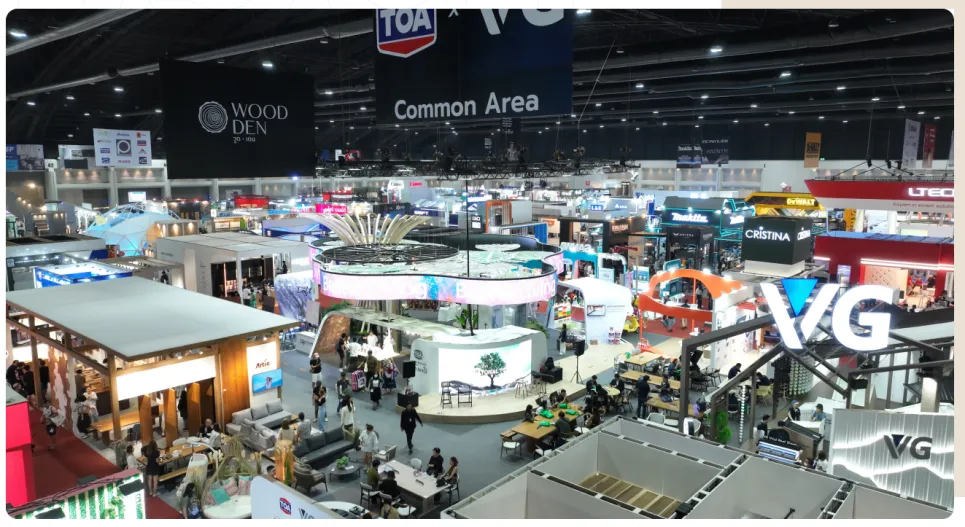2025年展会以"Past Present Perfect”为理念,展出面积超过75,000平方米,来自45个国家的超过1,000家泰国和国际顶尖参展品牌汇聚一堂,展出行业最先进的产品、设备、技术及服务,来自中国、德国、日本的国家展团规模创历史新高。展会为期6天,共接待专业观众85,000多人次,覆盖房地产开发商、建筑师、工程承包商及政府机构代表,再次彰显其作为东南亚建材贸易枢纽的重要地位。