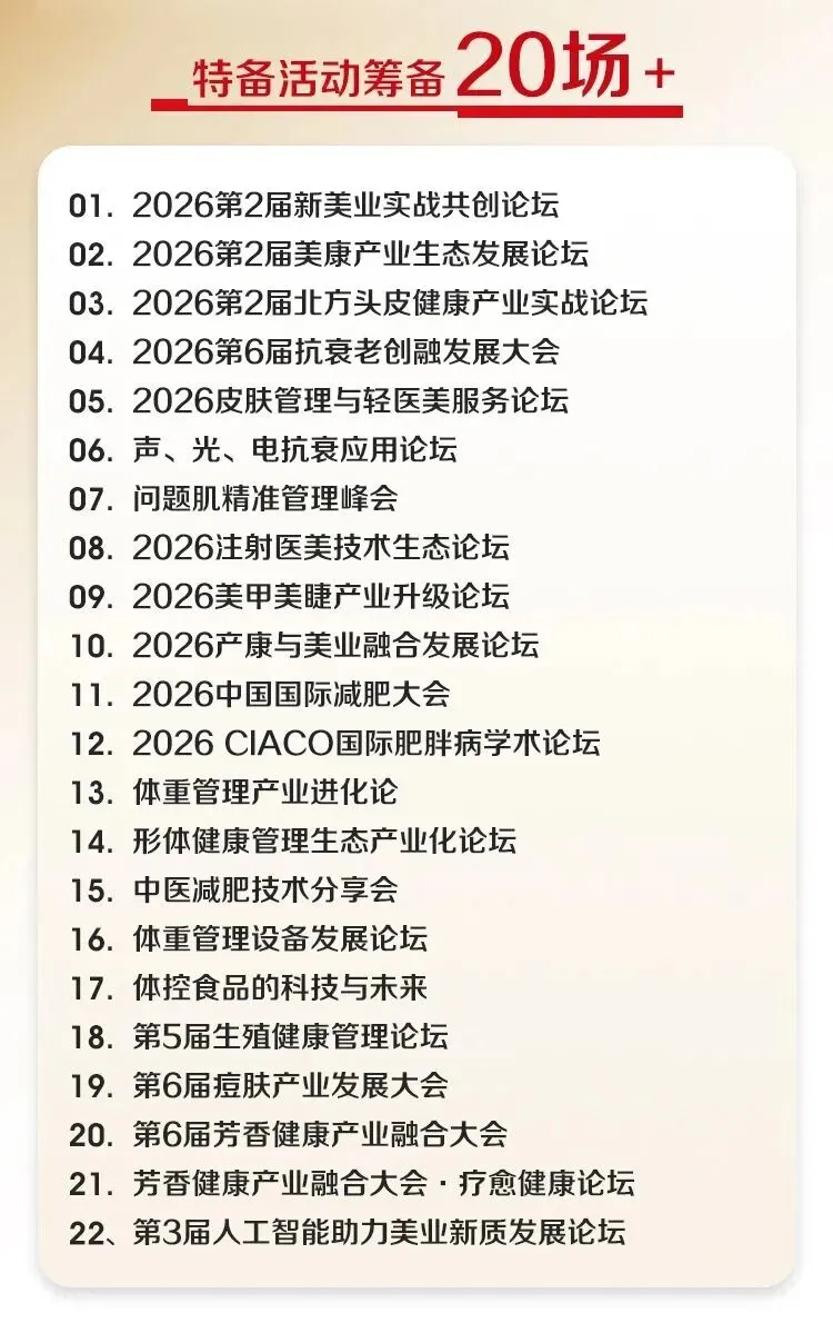 北京美博会将于2026年3月24-26日在北京国家会议中心隆重举行!近年,中国美业激流勇变:粗放狂奔已成过往,精耕细作正当其时。芳香疗愈、痘肌专研、私密养护、体重管理、皮肤管理、美甲美睫、头皮护理……细分赛道百花齐放;专业机构春笋破土,以“专而精”之刃,将“大而全”的旧格局一举推向新高地。