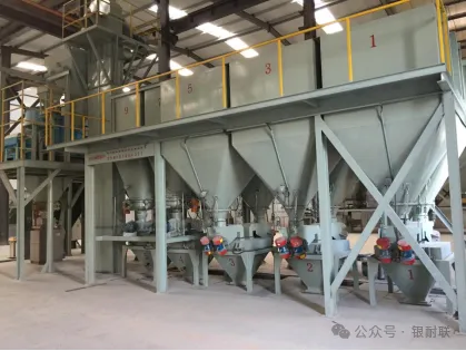 现出售两套正常运行不定形耐火材料自动化生产线。设备均为规范维护、完好运行状态,自动化程度高,适合不定形耐火材料、干粉砂浆等干物料的自动化配料、搅拌、包装、码垛等生产工艺。- 多物料存储:16个料仓( 8 个粉料仓+ 8 个颗粒料仓),可满足多品类物料分类存储需求。