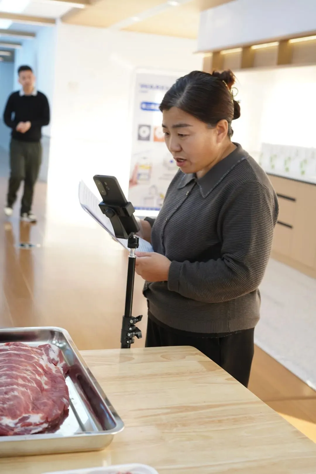 “家人们,咱们栾城本地鲜脊骨,49.9元整整10斤,新鲜直达!”“排骨99.9元4斤,肉质紧实不注水,炖菜红烧都绝了......”主播们娴熟的话术、真诚的分享,瞬间点燃网友购买热情。直播期间,在线观看人数持续攀升,留言互动刷屏不断,超值福利款更是被网友疯狂抢购,用实实在在的销量,印证了培训成果的“硬核含金量”。广大居民可以通过抖音搜索“吉农精选”和“凯隆达工厂店”,了解产品详情。