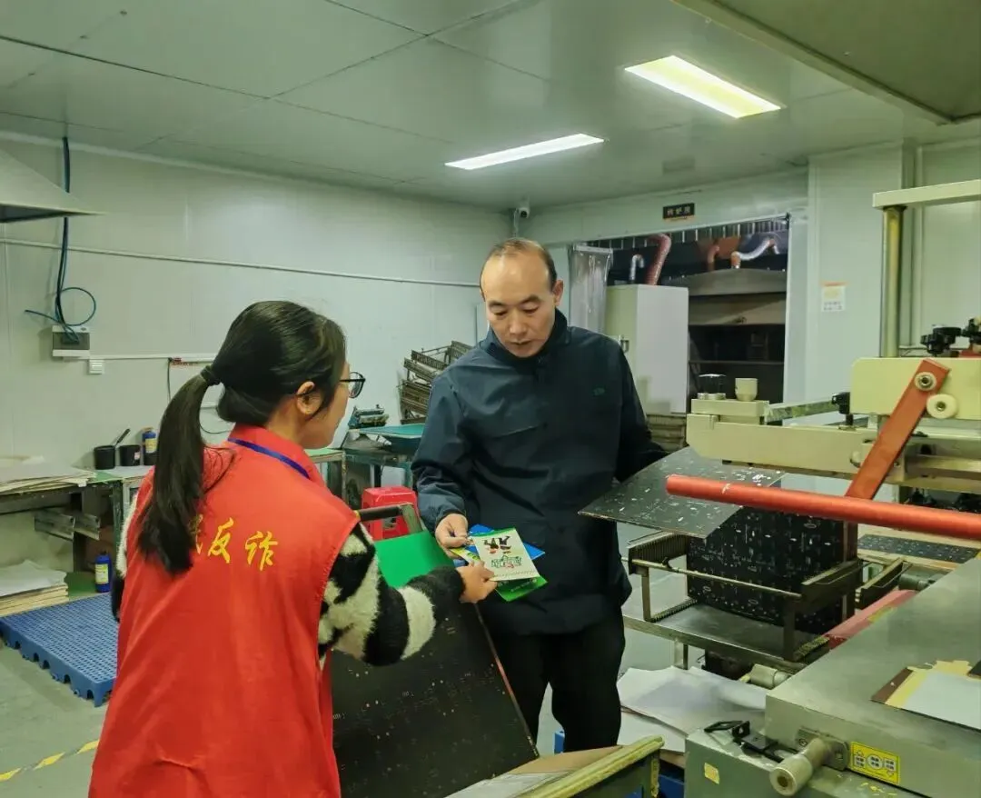 活动现场,民警与社工携带安全宣传手册资料,穿梭于各条生产线之间。在员工操作间隙,工作人员化身“安全讲师”,结合近期高发的“虚假兼职刷单”“投资理财陷阱”等典型案例,用通俗易懂的语言剖析电信诈骗套路,逐人发放防诈手册并叮嘱:“未知链接不点击、陌生来电不轻信、个人信息不透露、转账汇款多核实”。