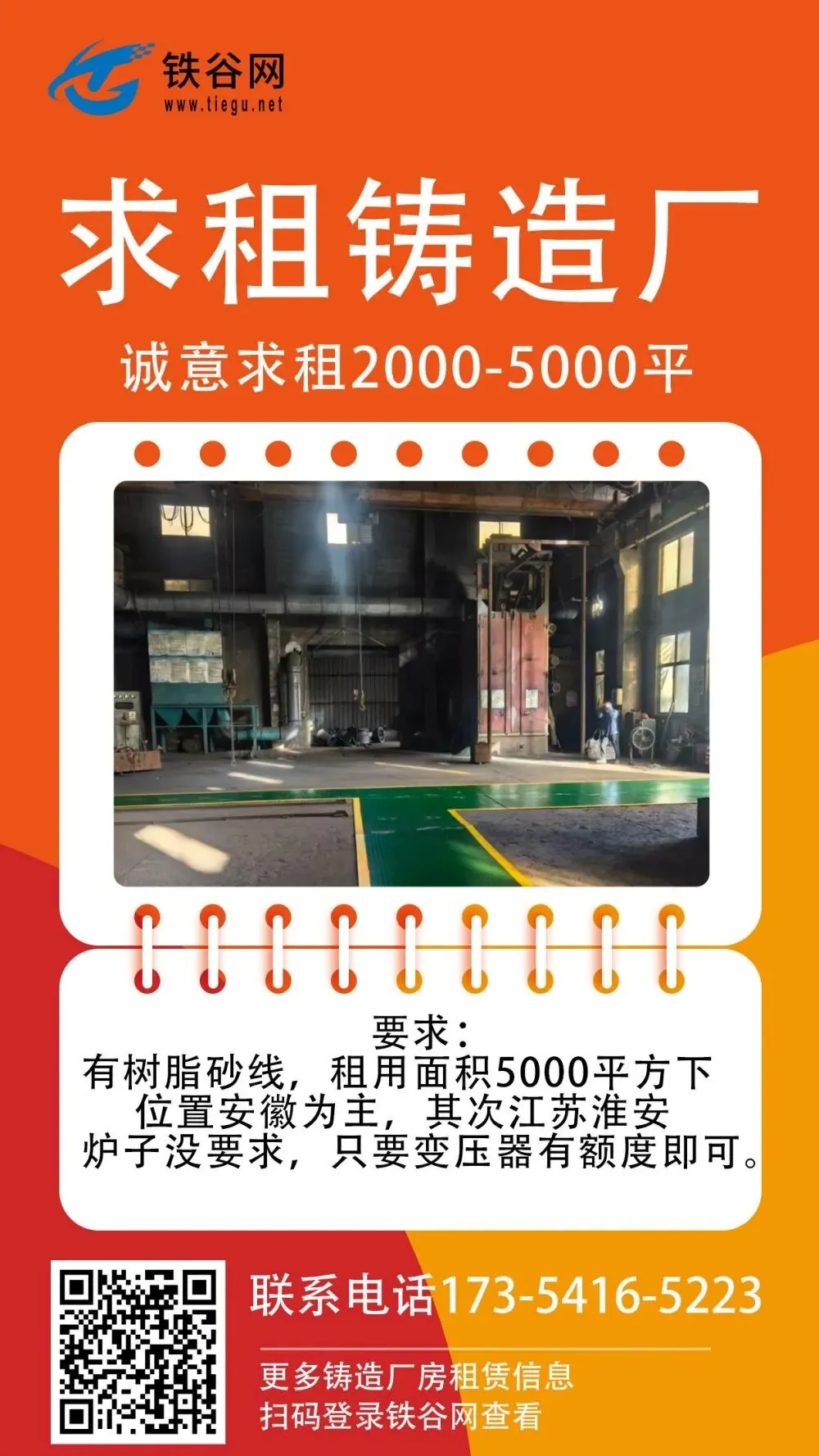 铸造企业发布出租或求组厂房信息,欢迎联系铁谷网