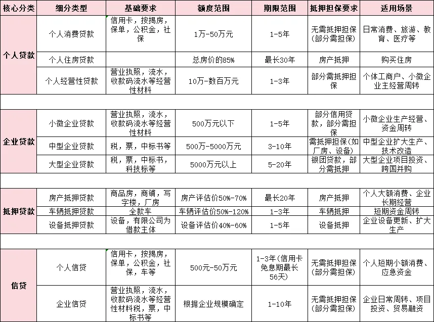 看完上面的拆解和汇总表,不管是个人还是企业,应该都能清楚不同贷款的特点和适用场景了。实际选贷款时,个人可以结合消费、买房等需求和还款能力来挑,企业则看经营规模和资金用途,多对比各类贷款的适配性,挑到最适合自己的融资方式。另外记得合理用款、按时还款,保持好信用,后续再需要金融服务也会更顺利。