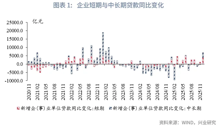 从当前经济形势出发,2025年12月PMI超季节性改善,或体现出企业部门在政策“前置发力”背景下对“开门红”已开始储备,预计也将体现于企业中长贷。12月制造业PMI生产、采购量指标环比提高1.7pct、1.6pct,新订单也上行1.4pct,产需共同好转。基建方面,受到资本金工具、南方暖冬利于施工、节前抢进度等积极影响,建筑业PMI达到52.8%,自2025年7月后重回扩张区间,其中新订单指数达到2025年最高水平,预计基建项目对2026年第一季度的企业中长贷也将有所支撑。