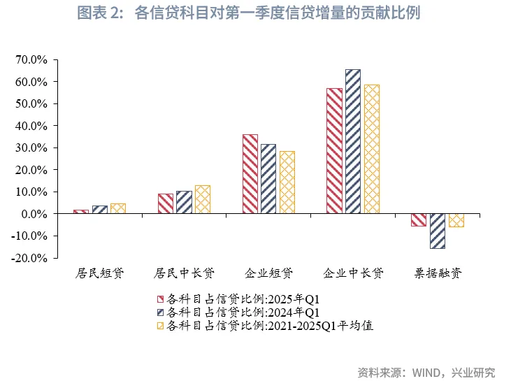 从历史经验出发,近五年企业中长贷约占第一季度信贷增量的58.6%,该比例高于其余季度的49.3%,带动第一季度单季人民币信贷平均新增9.2万亿元。其中,2023-24年的支撑明显更强:2024年获益于需求端回暖,该科目占信贷新增量的65.5%;2023年则由于上轮政策性金融工具的滞后效应,占信贷新增量的63.0%。