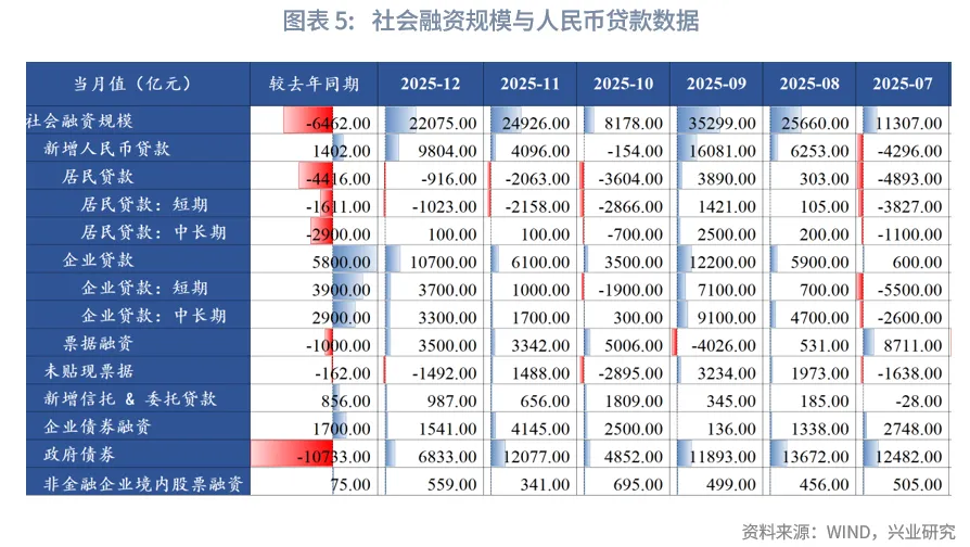 2025年12月新增贷款高出预期,但仍低于季节性水平,M2同比回升,社融同比受政府债节奏影响而下降。