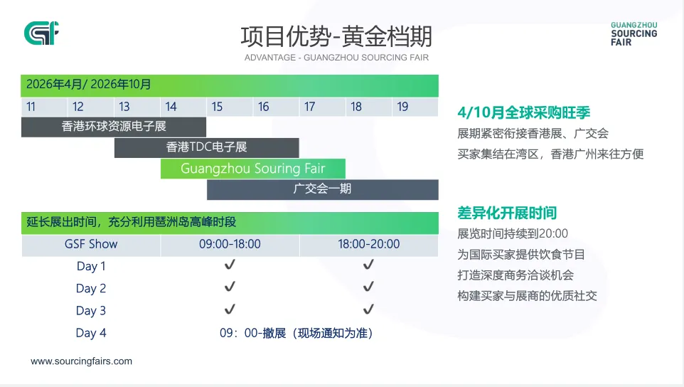 展会精心布局于每年4月与10月,这正是全球采购旺季。此时,大量国际买家因周边大型国际展会而汇聚湾区。对于许多希望接触国际客户、却因某些展会门槛高、名额有限或费用不菲而望而却步的企业来说,这里提供了一个更友好、更直接的窗口——无需高昂投入,也能直面真实买家,抢占一手海外订单。