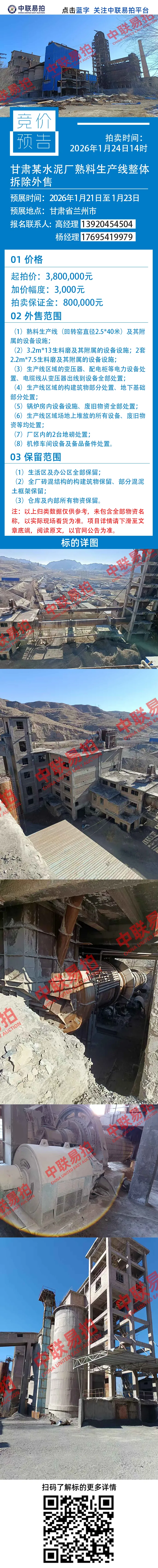 【甘肃】380万起拍,某水泥厂熟料生产线整体拆除外售