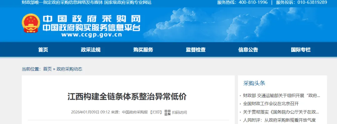 江西的新政并非孤立存在,而是国家治理政府采购乱象的重要组成部分。回溯治理进程,2025年初财政部率先在北京、天津、上海等六省市启动异常低价问题专项治理试点,拉开了全国整治的序幕。同年6月,江苏省财政厅发布实施细则,明确规定无法合理解释低价成因的投标将被判定无效,从制度层面阻断了"恶意低价"的通道。