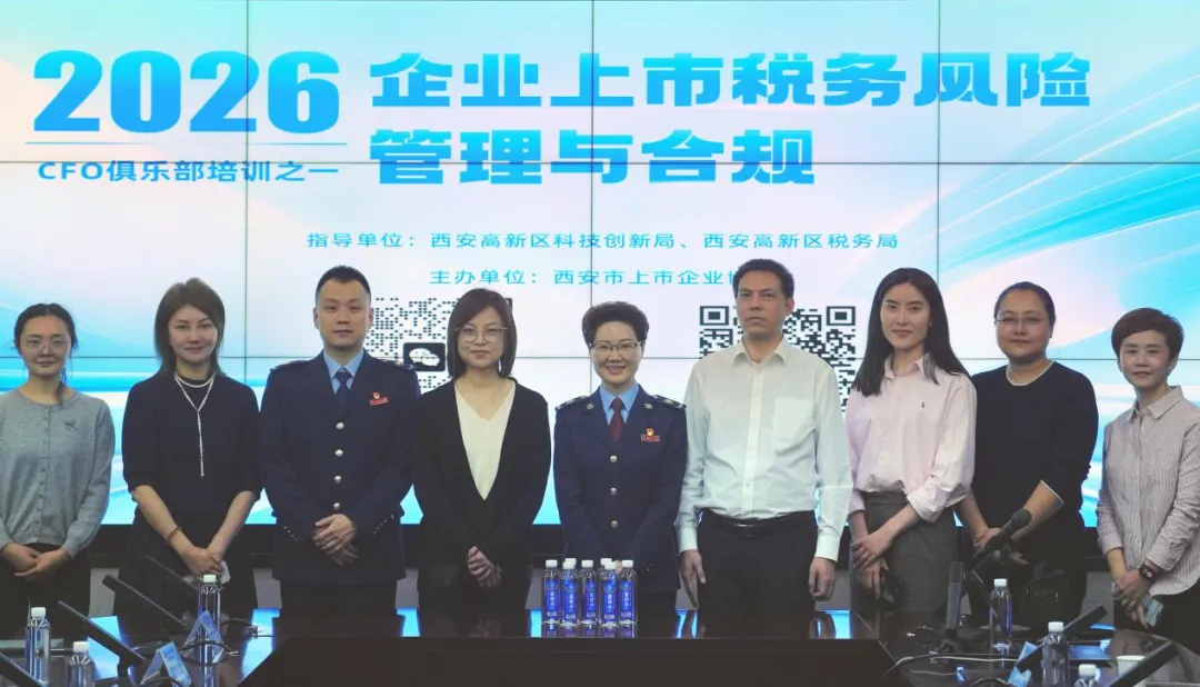 在全面注册制深化实施的背景下,税务合规已成为企业冲刺资本市场的“必答题”,更是决定上市之路能否行稳致远的核心基石。2026年1月15日下午,由西安高新区科技创新局、国家税务总局西安高新技术产业开发区税务局联合指导,西安市上市企业协会主办的2026年企业CFO俱乐部系列培训首场活动 ——“企业上市税务风险管理与合规”专题培训成功举办。来自龙腾半导体、莱特光电、荣信文化、蓝深科技、数字怪兽等会员企业的董秘、财务总监、主要财税人员齐聚一堂,共探企业上市全流程税务合规解决方案。