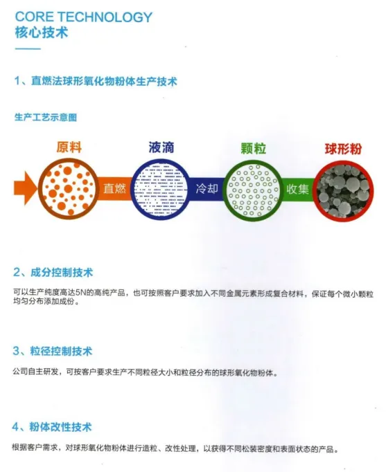 三锐佰德新材料有限公司成立于2015年,具有纳米、亚微米超细球形氧化铝、氧化硅粉体系列产品生产能力。三锐佰德技术力量雄厚,在国内率先成功研发出直燃法超细球形金属氧化物粉体生产技术并获得国家发明专利授权,成为全球第二家亚微米球形氧化铝、氧化硅粉体供应商,目前可以批量供应包括氧化铝、氧化硅、氧化镁、氧化钛等球形氧化物粉体及铝镁尖晶石、ZTA等球形复合粉体。