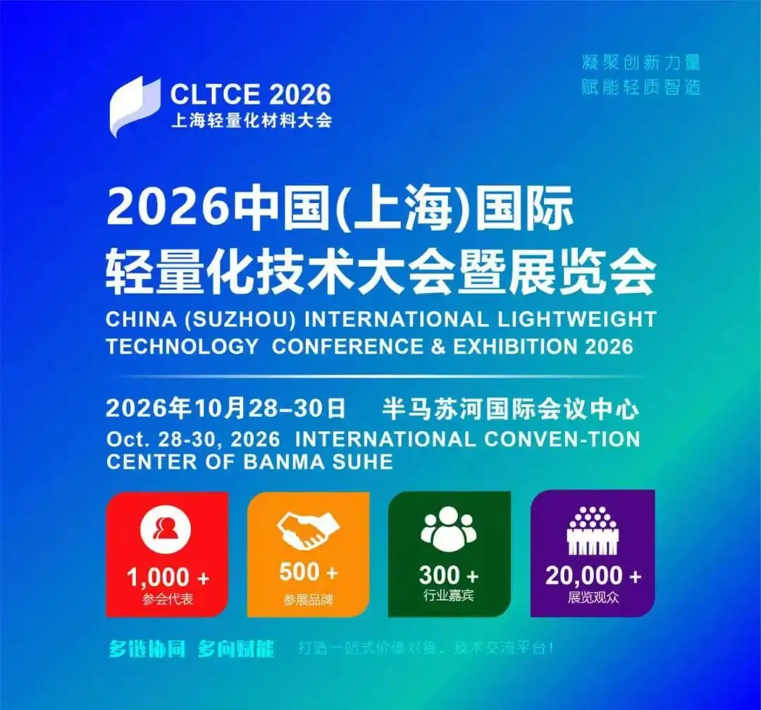 “CLTCE2026中国(上海)国际轻量化技术大会暨展览会”将于2026年10月28-30日在半马苏河国际会议中心隆重举办!本届大会以 “凝聚创新力量 赋能轻质智造”