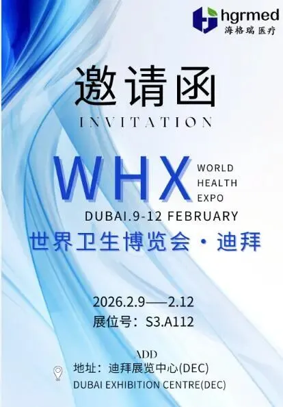 51th Arab Health WHX9 - 12 February 2026 Dubai Exhibition Centre UAEBOOTH:S3.A112Highgreen MedicalWHX Dubai (9–12 Feb, Dubai Exhibition Centre)奔赴迪拜!海格瑞医疗邀您共赴2026迪拜阿拉伯国际医疗设备展览会2026年2月9日-12日,迪拜国际医疗器械展(WHX DUBAI) 将在迪拜展览中心盛大召开。作为中东地区规模领先、影响力深远的医疗行业标杆展会,本届盛会预计吸引全球180+国家、数千家企业及数万专业观众齐聚,搭建起连接全球医疗资源的核心桥梁,成为洞察行业趋势、拓展国际市场的黄金平台。在展会上,海格瑞医疗将重点呈现其急救设备、输注耗材、医用敷料三大产品,主要包括:1. 急救设备:麻醉视频喉镜、麻醉喉镜。2. 手术耗材:一次性麻醉呼吸管路、一次性窥视片、一次性呼末二氧化碳监测导管、医用钙石灰。3. 医用敷料系列产品:自粘弹性绷带、弹力绷带、压力绷带、肌内效、网纹易斯胶带,透气胶带、柔棉宽胶带。届时,参观者可亲身体验海格瑞医疗的创新产品与解决方案,并与业务团队深入洽谈,共同探讨中东、非洲及全球市场的新合作机遇。